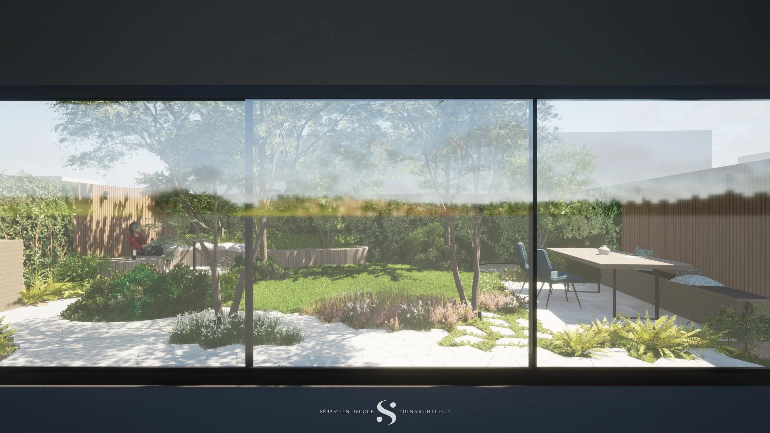 Door het samenspel van materialen, vormen en functies lijkt de tuin aanzienlijk ruimer dan de werkelijke oppervlakte doet vermoeden.
